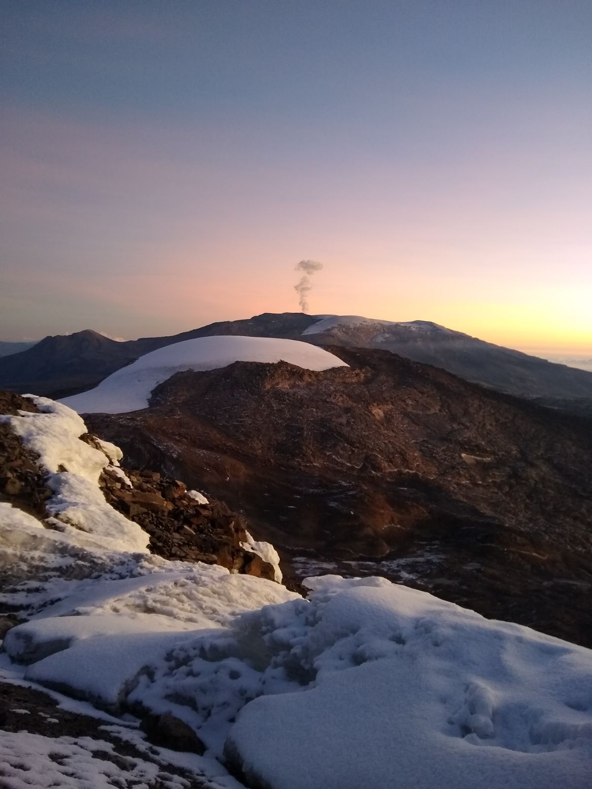 Partimos el 9 de diciembre antes de la media noche desde Manizales, llegamos a las tres de la madrugada a Conejeras y el cronómetro empezó a contar. Queríamos saber en qué tiempo podríamos realizar una posible integral. Cincuenta minutos después, ya nos encontrábamos sobre los 4800 m, en el borde glaciar, a tope. Allí nos alistamos e iniciamos el ascenso, el cual solo nos tomó 24 minutos hasta el final del glaciar Centro y luego una pequeña escalada de 10 minutos, que nos llevó a la verdadera cima central. Nos quedamos esperando el alba y tal vez a responder, por qué subimos montañas. Ese es uno de los momentos que valen todo el esfuerzo, sin palabras, solo contemplar y sentirnos afortunados de estar allí en medio de la nada y a la vez, de todo.
