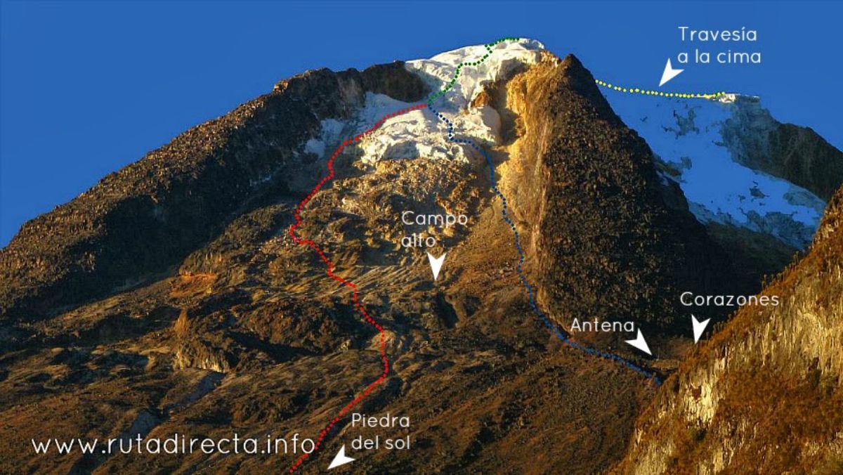 Ubicado en el flanco oriental del Nevado, es una de las vías más evidentes y directas a la cima. Su combinación de roca, nieve e hielo lo hacen una atractiva opción para quienes se inician en los ascensos mixtos, especialmente en los meses de invierno.