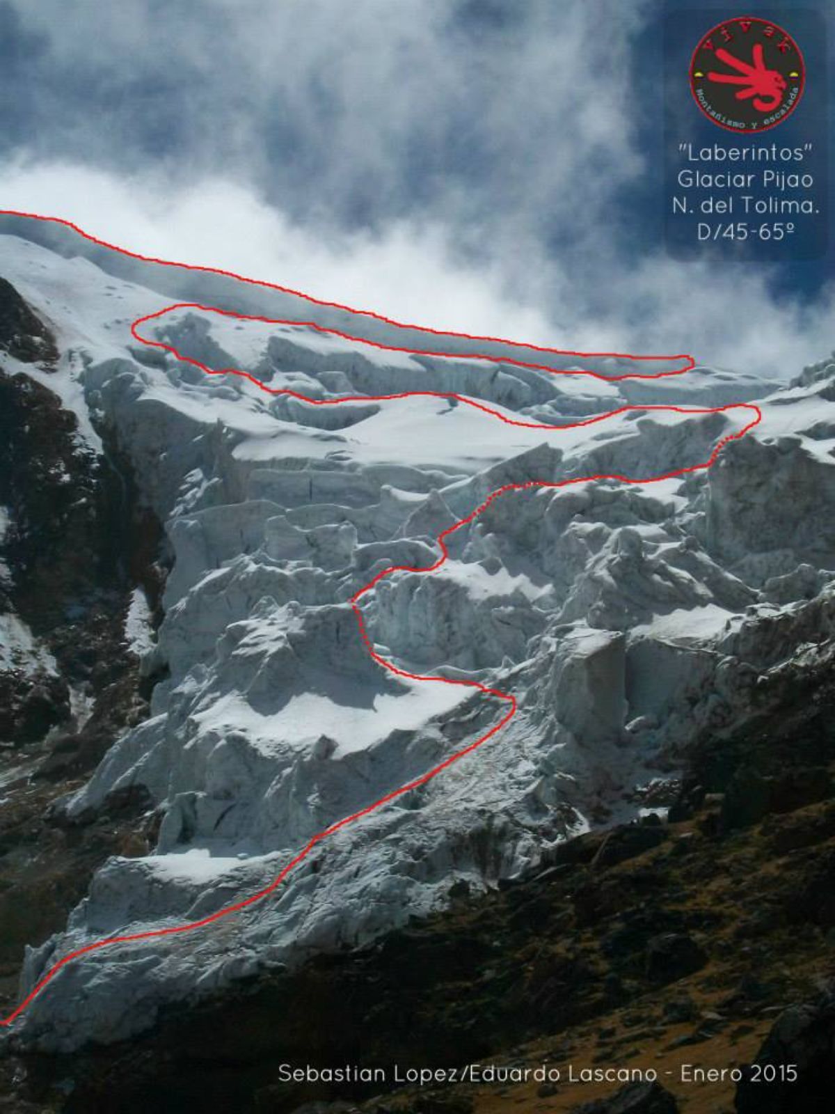 Como lo evidencia la ruta más reciente de 2015, “Laberintos” (D 45/65) el reto del Pijao consiste en elegir la ruta a cada paso, haciendo numerosos zigzags entre profundas grietas y grandes bloques de hielo, con pobre visual general del área en que se avanza. Croquis y mapas no ayudan mucho a la cordada que se aventura a escalar este caótico glaciar.