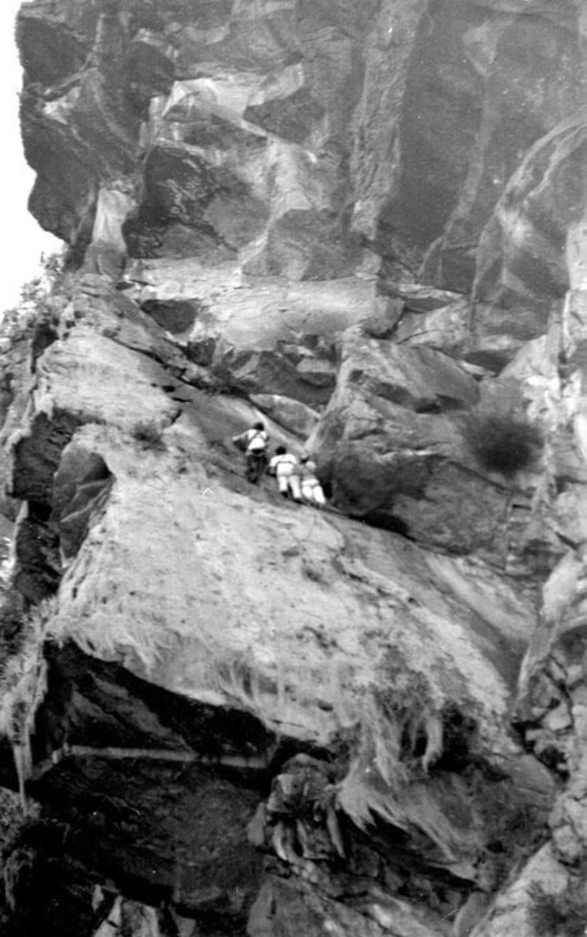 Narré a los chicos cómo el par de primos se aventuraron a treparse a las rocas de forma intuitiva, descubriendo ascensos que darían inicio a las rutas clásicas, improvisando anclajes a las rocas con los clavos de los rieles, aprendiendo de escalada con los escasos artículos que descubrían y dejándose llevar por la pasión que los invadía.